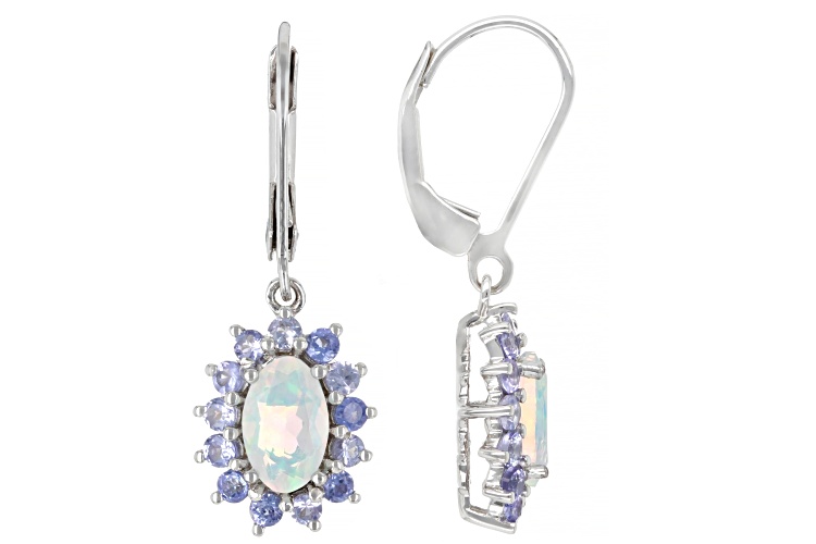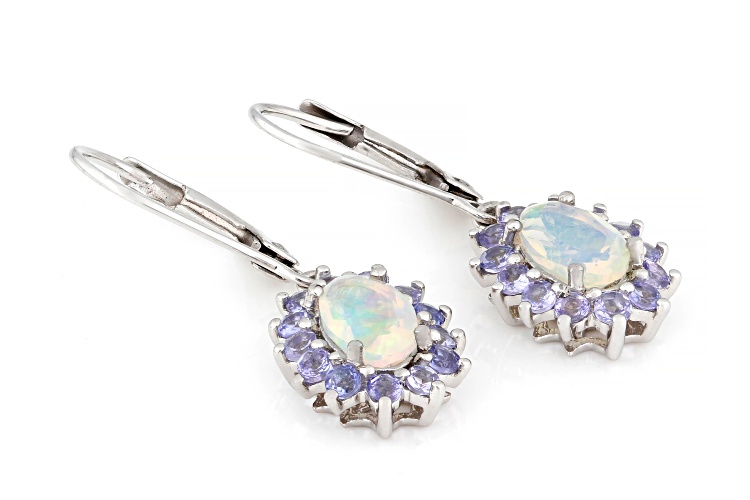 Ethiopian Opal with 0.66ctw Tanzanite Rhodium Over Sterling Silver Earrings