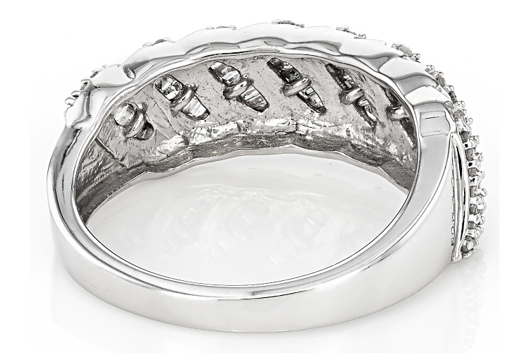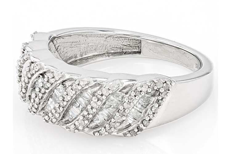 • 0.60ctw Round And Baguette White Diamond Rhodium Over Sterling Silver Band Ring - Size 5