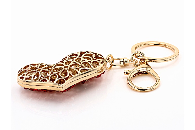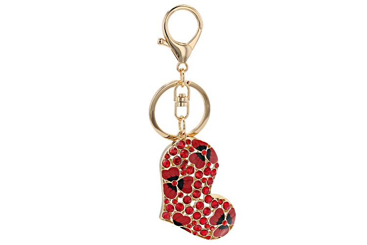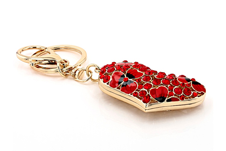 Off Park® Collection, Gold Tone Red Crystal and Enamel Heart Key chain with Flowers