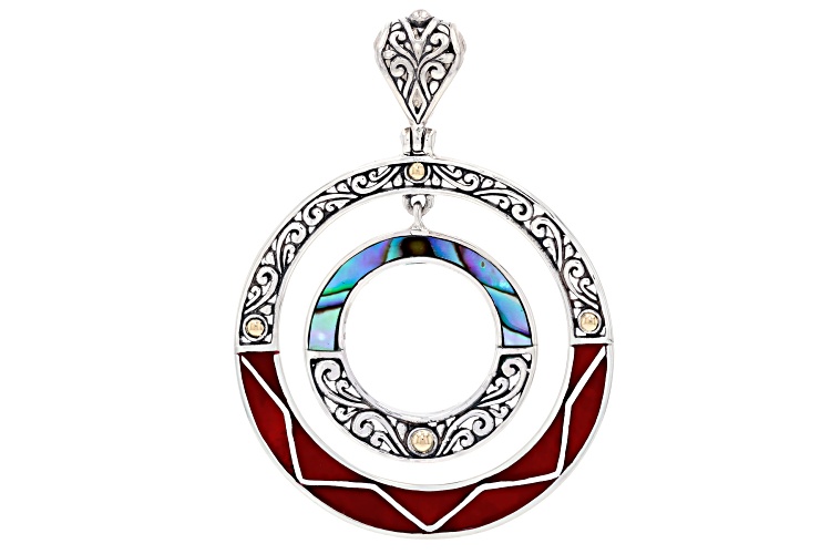 Artisan Collection of Bali™ Sterling Silver With 18K Gold Accent Coral, Abalone Shell Inlay Pendant