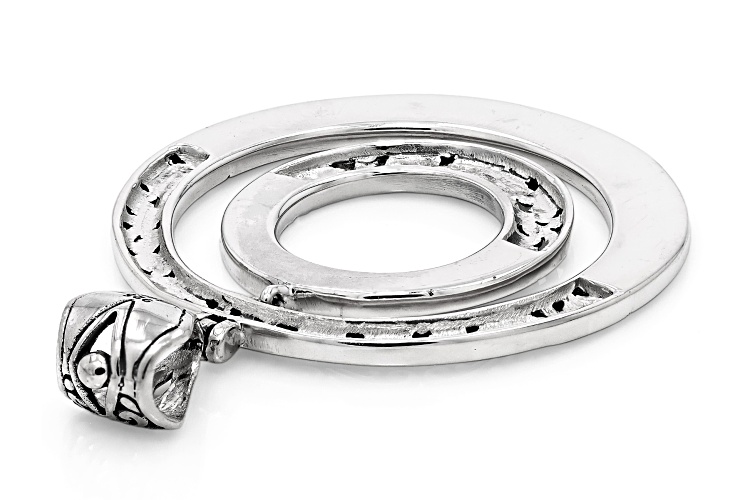 Artisan Collection of Bali™ Sterling Silver With 18K Yellow Gold Accent Coral & Abalone Shell Inlay Circle Pendant. Oxidized. Measures Approximately 1.84"L x 1.33"W.