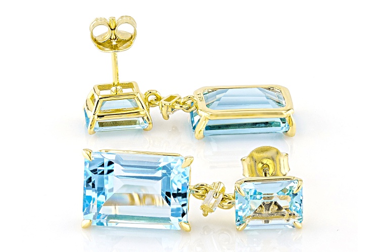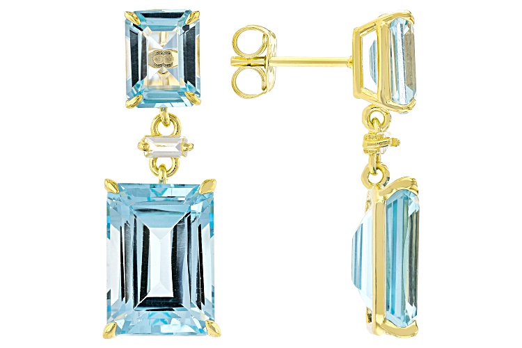 23.50ctw Rectangular Octagonal Glacier Topaz™ With 0.50ctw Baguette White Topaz 18k Yellow Gold Over Sterling Silver Earrings. Measures Approximately 1.10"L x 0.28"W. Pushbackings.