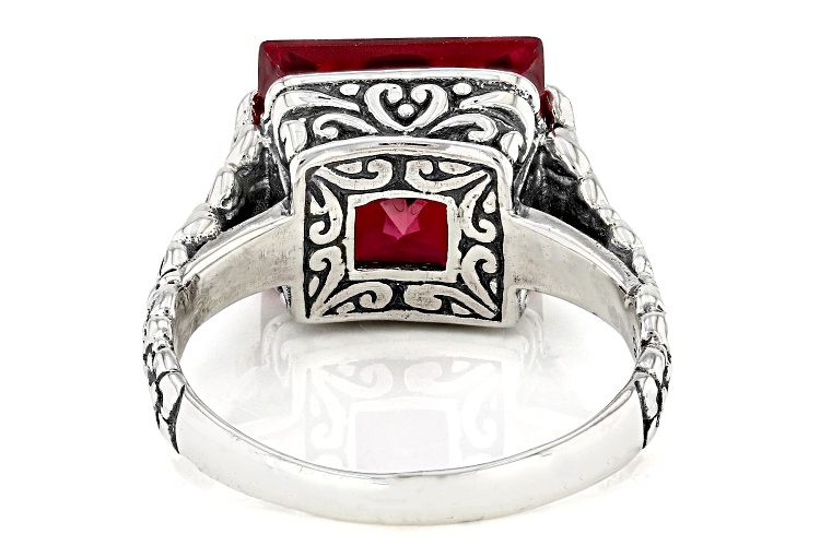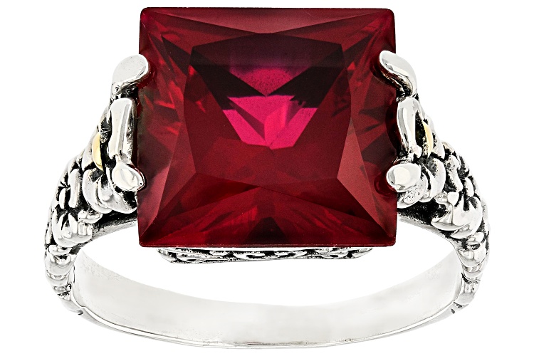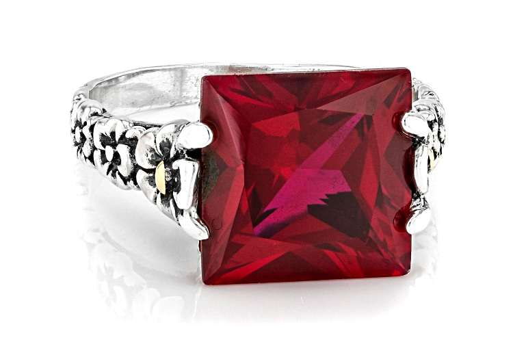 Artisan Collection of Bali™ 6.88ct Lab Created Ruby Sterling Silver & 18K Gold Accents Floral Ring - Size 9