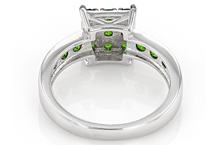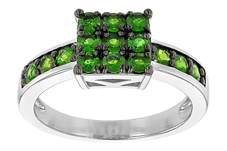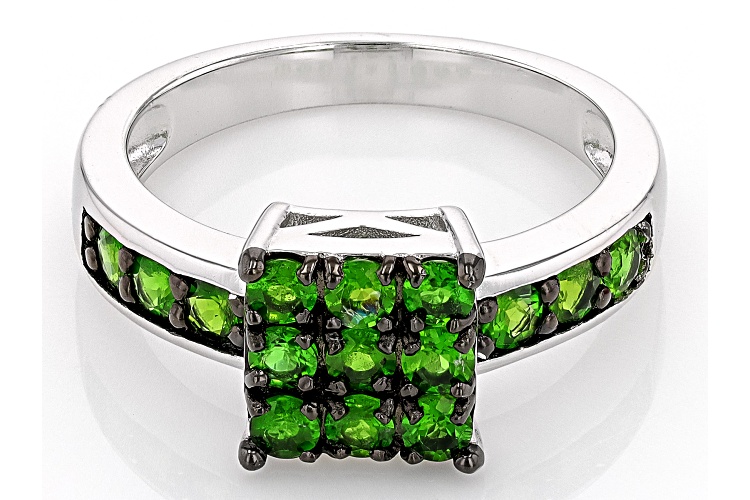 0.90ctw Round Chrome Diopside Rhodium Over Sterling Silver Ring - Size 7
