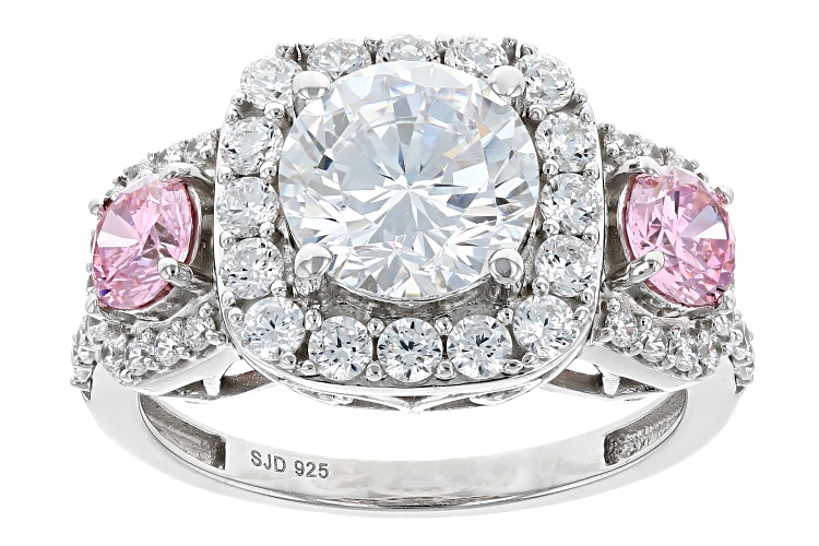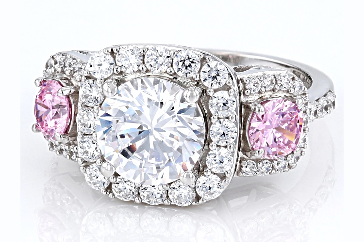 • Bella Luce® 6.54ctw White and Pink Diamond Simulants Rhodium Over Sterling Silver Ring (3.96ctw DEW) - Size 9