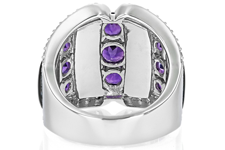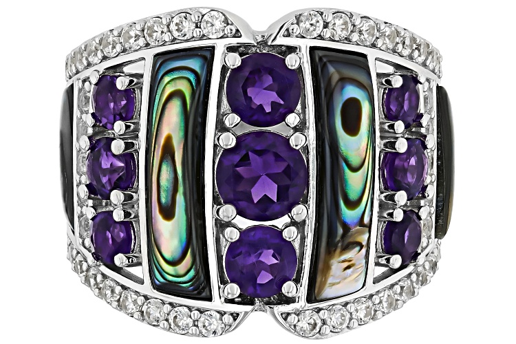 Pre-Owned 1.46ctw Amethyst, Freeform Abalone Shell With .86ctw White Zircon Rhodium Over Silver Ring - Size 7