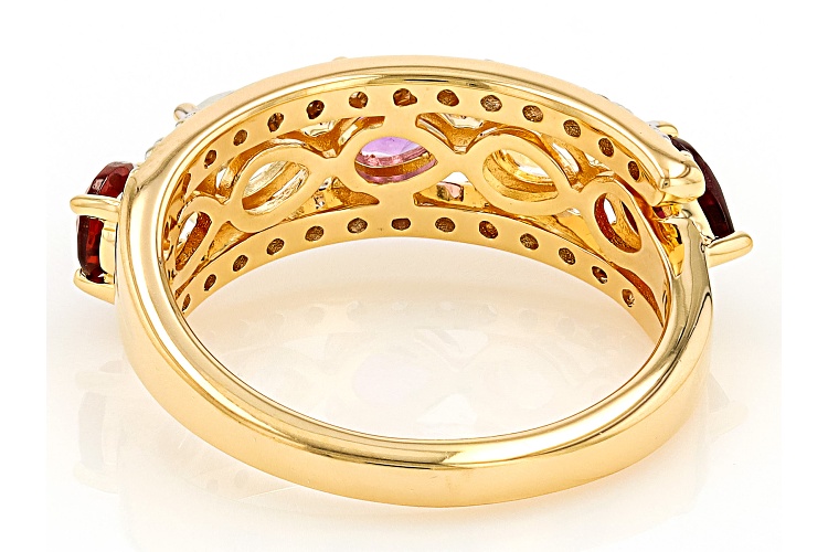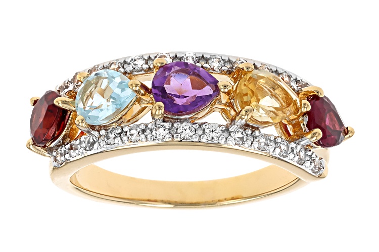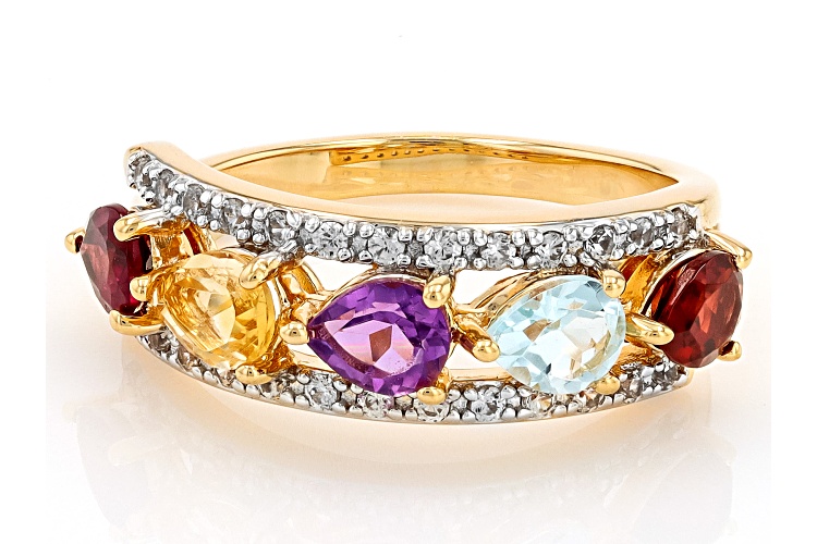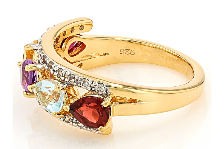 0.36ct Pear Red Garnet With 0.23ct Pear Purple Amethyst With 0.25ct Yellow Citrine With 0.31ct Pear Sky Blue Topaz With 0.32ct Pear Purple Rhodolite And 0.24ctw Round White Zircon 18k Yellow Gold Over Sterliing Silver Ring. Measures Approximately 1.15"L x 0.29"W. Not Sizeable. Accent Stones Primarily Zircon.