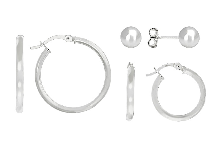 • Sterling Silver 18mm Hoop, 25mm Hoop and 7mm Ball Earring Set of 3