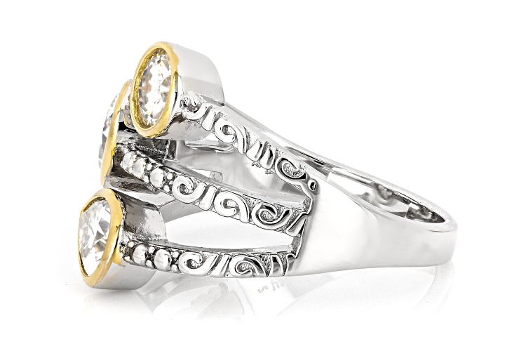 • MOISSANITE FIRE® 2.18CTW DEW PLATINEVE® AND 14K YELLOW GOLD OVER SILVER RING RING - Size 8