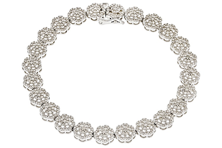 1.00ctw White Diamond Rhodium Over Sterling Silver Tennis Bracelet - Size 7.25