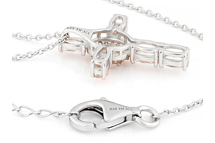 1.12ctw Morganite, Zircon Two Tone Rhodium, 14k Rose Gold Over Sterling Silver Pendant W/Chain