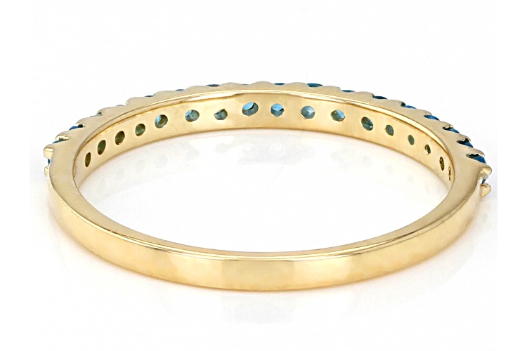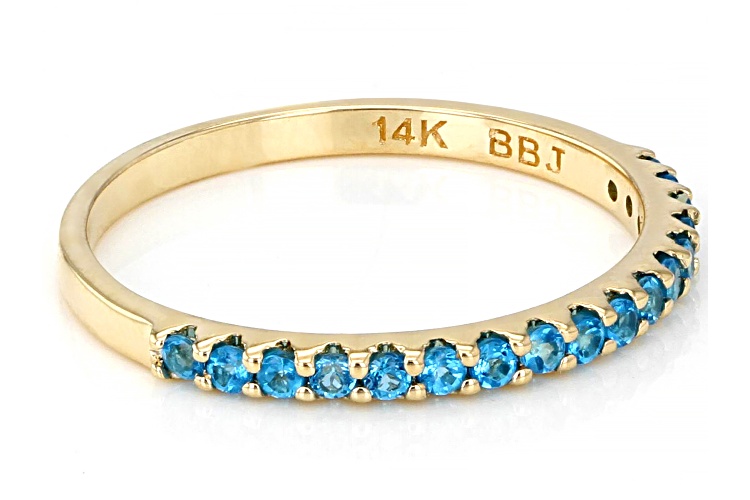 Park Avenue Collection® 0.22ctw round blue neon apatite, 14k yellow gold band ring. Measures approximately 13/16"L x 1/16"W and is sizeable.