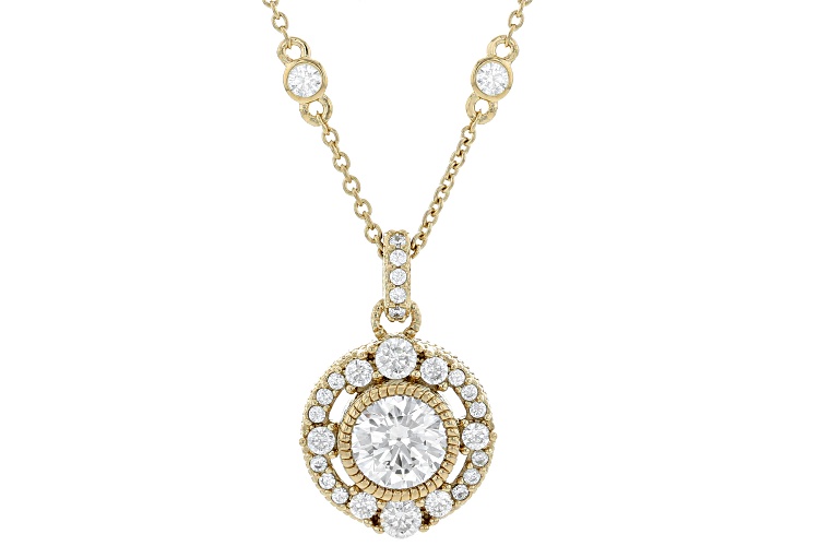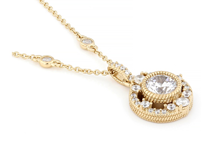 Judith Ripka 4.62ctw round white Bella Luce® 14k gold clad haute necklace. Measures approximately 0.85"L x 0.55"W. Lobster claw clasp with 2" extender.