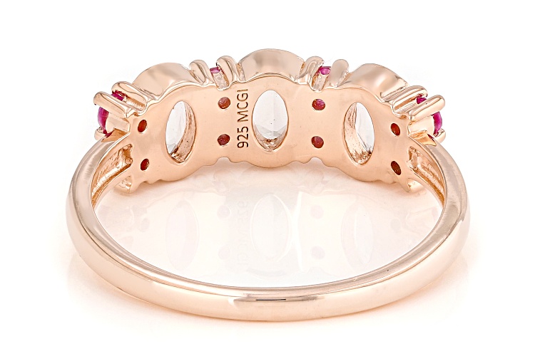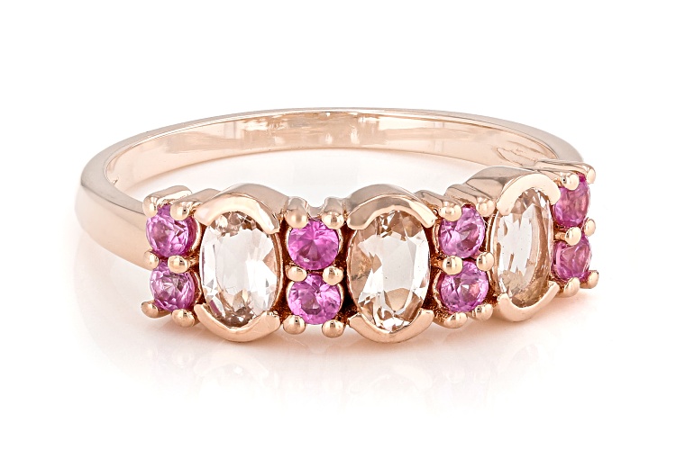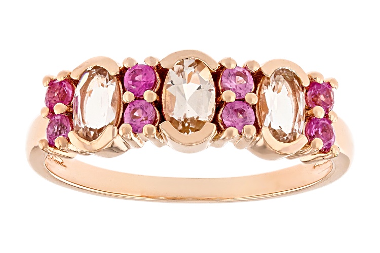 Pre-Owned 0.49ctw Peach Morganite With 0.27ctw Round Lab Created Pink Sapphire 18k Rose Gold Over Sterling Silver Ring. Measures Approximately 0.65"L x 0.23"W. Not Sizeable. . This product may be a customer return, vendor sample, or on-air display and is not in its originally manufactured condition. It may not be new. In some instances, these items are repackaged by JTV.