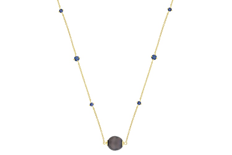 • 10mm Cultured Tahitian Pearl With Blue Moissanite 18k Yellow Gold Over Silver 20 Inch Necklace - Size 20