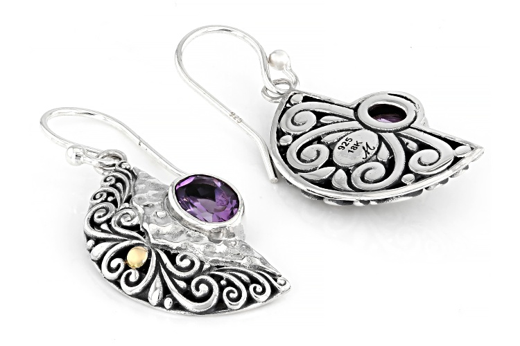 • Artisan Collection of Bali™ 0.67ctw Amethyst Sterling Silver Balinese Scrollwork Earrings