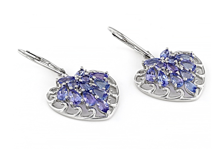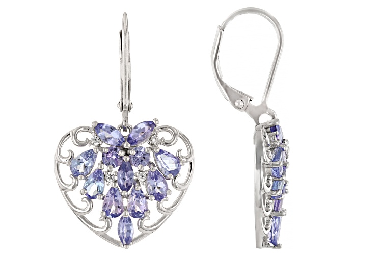 • 3.67ctw Tanzanite With 0.07tw White Zircon Rhodium Over Sterling Silver Earrings