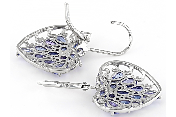 3.67ctw Marquise, Pear, and Round Tanzanite with 0.07ctw Round White Zircon Rhodium Over Sterling Silver Earrings. Measures Approximately 0.68"L x 0.78"W. Lever Backings. Accent Stones Primarily Zircon.