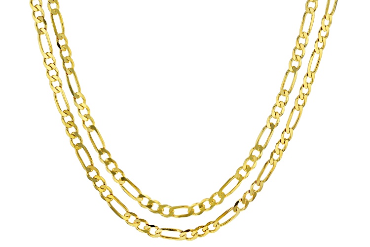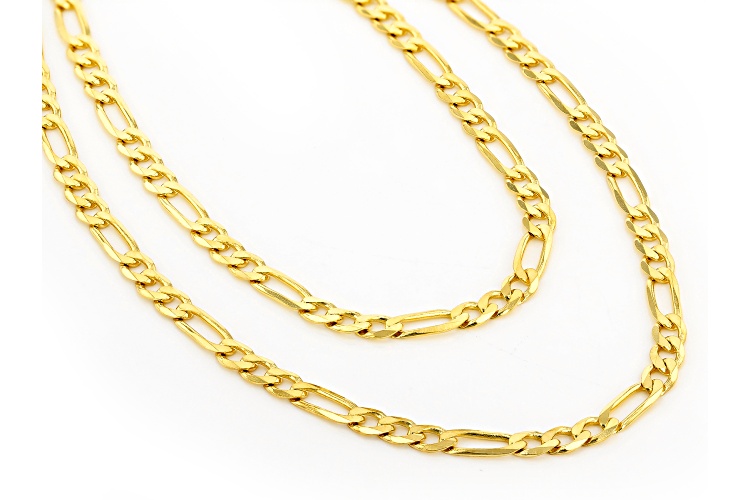 • 18K Yellow Gold Over Sterling Silver Set of Two 3MM 20 and 24 Inch Figaro Chains