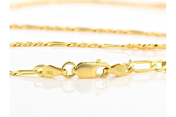 18K yellow gold over sterling silver set of two 20 and 24 inch figaro chains. Measures approximately 20 inches in length by 0.11 inches in width, 3mm gauge, and has a lobster claw clasp. Measures approximately 24 inches in length by 0.11 inches in width, 3mm gauge, and has a lobster claw clasp.