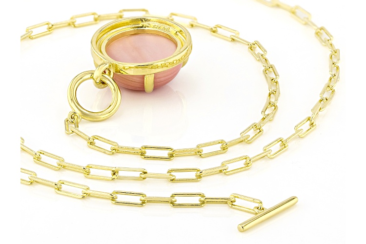 • 14mm Pink Conch Shell 18k Yellow Gold Over Sterling Silver Necklace