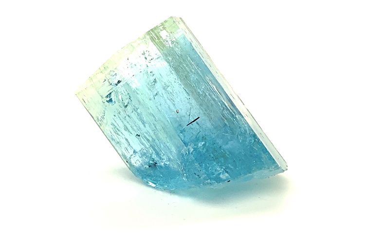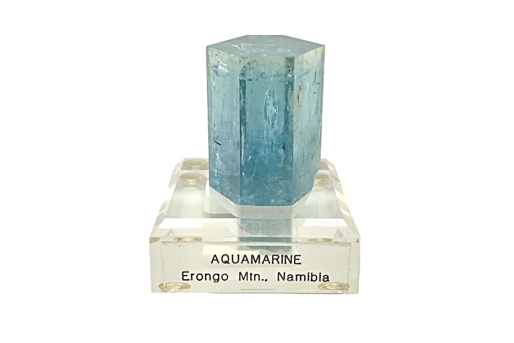 Namibian aquamarine 3x3.3x4.8 cm mineral specimen with custom base. This specimen is from Erongo Mountain, Erongo Region, Namibia. It has a unique green-blue cap on the termination of the crystal. This is a fine example of an aquamarine from that locality.
