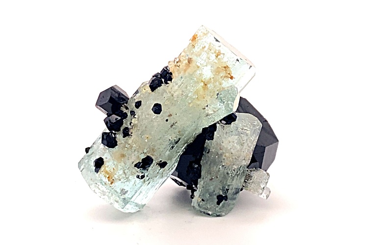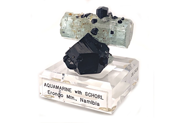 Namibian aquamarine and schorl 4.8x3.7x4.5 cm mineral specimen. This specimen is from Erongo Mountain, Erongo Region, Namibia.