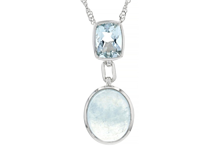Pre-Owned 12x10mm Dreamy Aquamarine with 1.02ctw Aquamarine Rhodium Over Sterling Silver Pendant with Chain. Measures Approximately 1.12"L x 0.45"W. 18" Singapore Chain with 2" Extender. Lobster Claw Clasp.. This product may be a customer return, vendor sample, or on-air display and is not in its originally manufactured condition. It may not be new. In some instances, these items are repackaged by JTV.