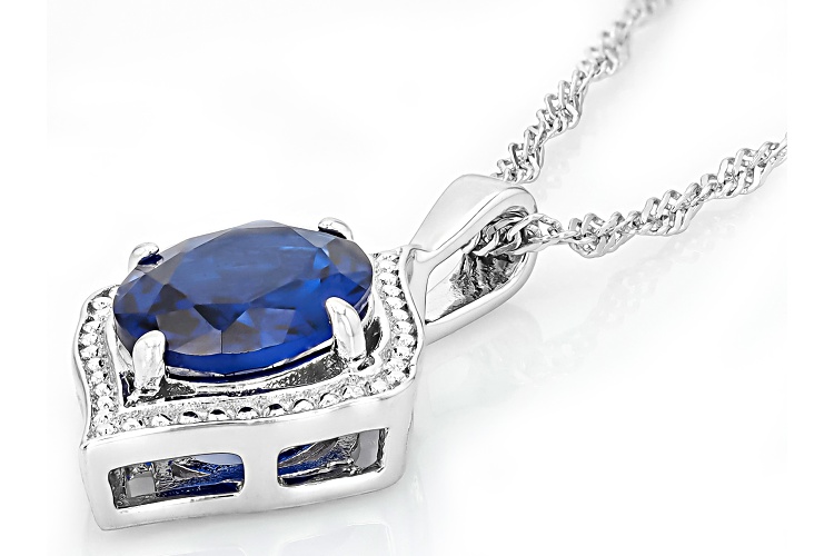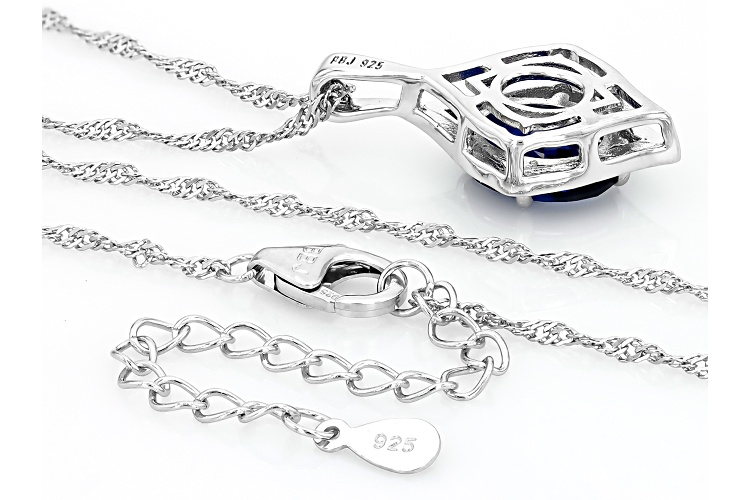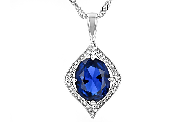 2.40ct Oval Lab Created Blue Spinel Rhodium Over Sterling Silver Pendant with Chain