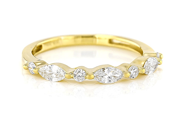 Prazana® Lab-Grown Diamonds 0.50ctw marquise and round white lab-grown diamond, 14k yellow gold over sterling silver band ring. Measures approximately 7/8"L x 1/16"W and is not sizeable. H color, SI clarity minimum.