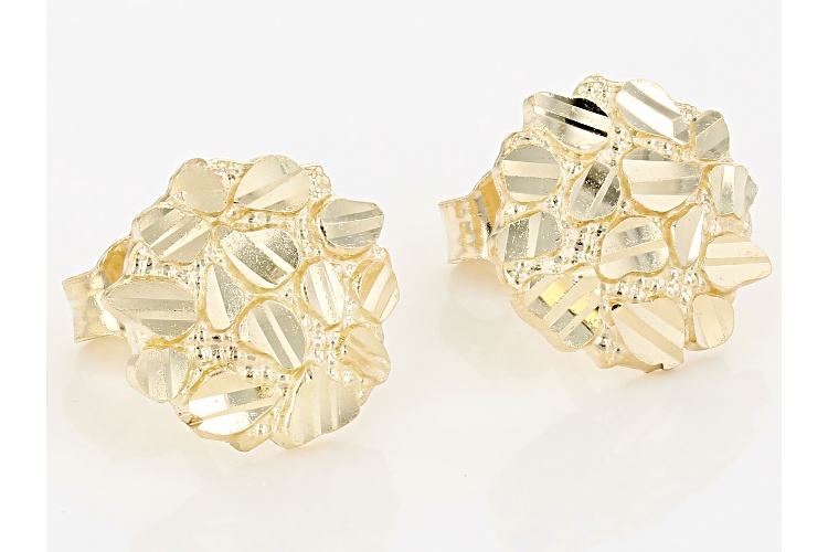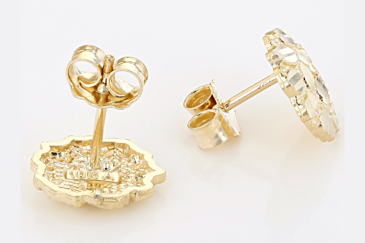 10k Yellow Gold 10mm Nugget Stud Earrings and have push backings.