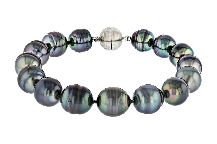 • 10-12mm Multi-Color Cultured Tahitian Pearl Rhodium Over Sterling Silver Bracelet
