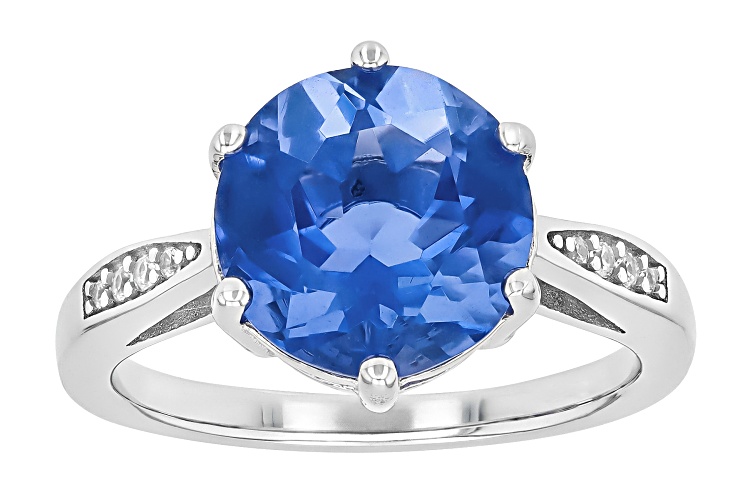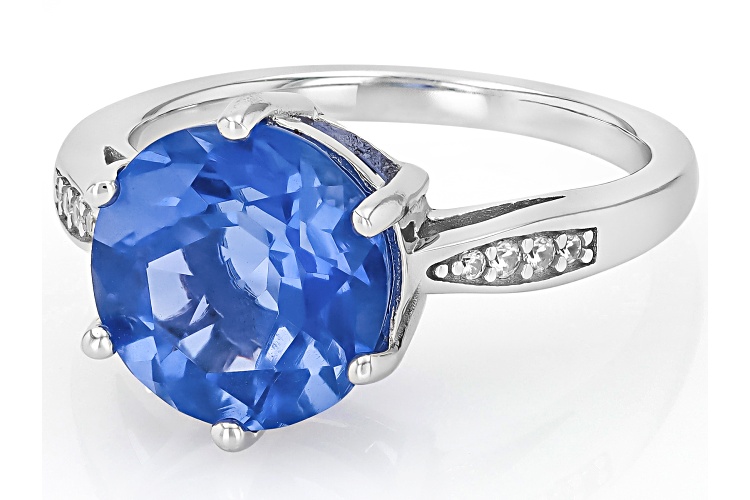 • 4.25ct Color Change Fluorite with 0.05ctw White Zircon Rhodium Over Sterling Silver Ring - Size 9