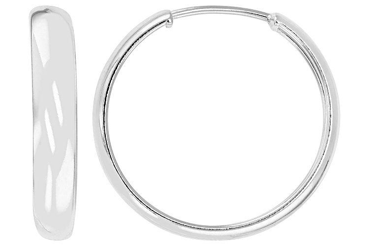 Sterling Silver 0.75" High Polished Hoop Earrings. Hidden Snap Posts.