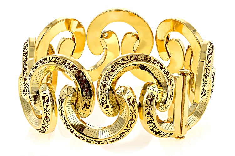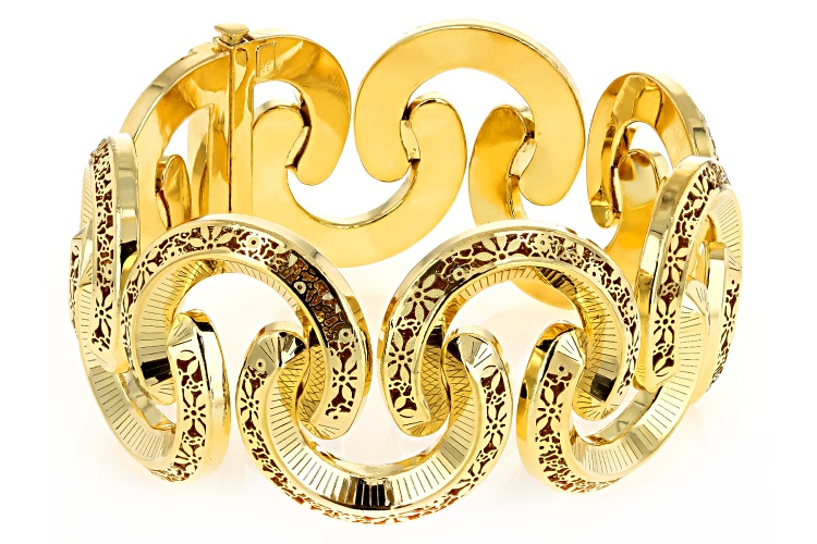 Stefano Oro® 14k Yellow Gold "Ricciolo D'oro" Ricami Bangle Bracelet. Measures Approximately 1 1/2"W. Push Botton Lock Clasp.