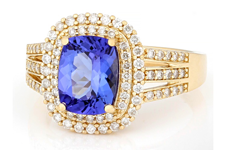 1.68ct Tanzanite With 0.42ctw White Diamond 14k Yellow Gold Ring - Size 8