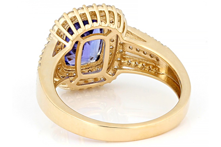1.68ct Rectangular Cushion Blue Tanzanite With 0.42ctw Round White Diamond 14k Yellow Gold Ring. Measures Approximately 0.48"L x 0.55"W.