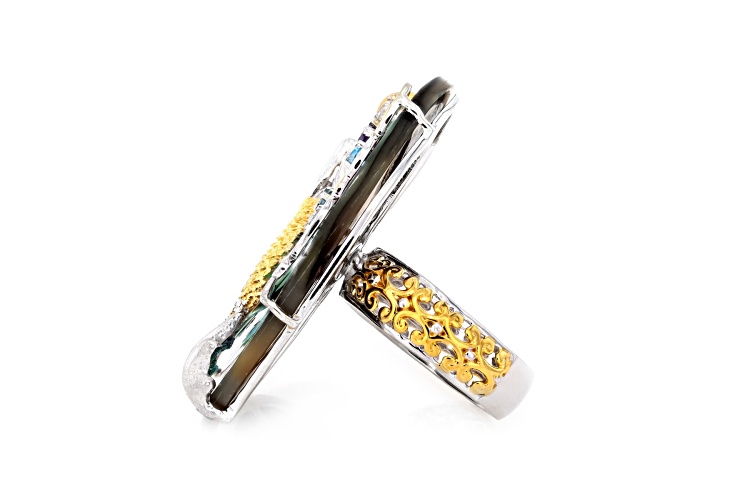 • 40x30mm .60ctw Abalone, Multi Gemstone Rhodium/24K Gold Over Palladium Sterling Silver Ring - Size 10