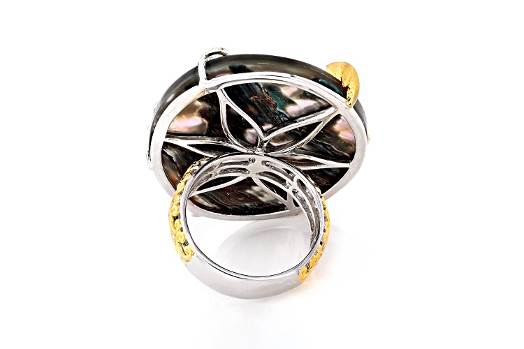 40x30mm .60ctw Abalone, Multi Gemstone Rhodium/24K Gold Over Palladium Sterling Silver Ring - Size 10