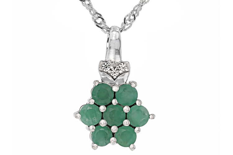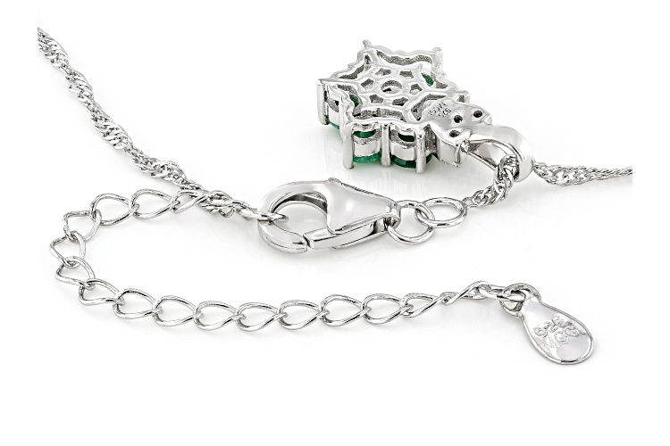 0.55ctw Round Brazilian Emerald With 0.03ctw White Zircon Rhodium Over Silver Pendant with Chain