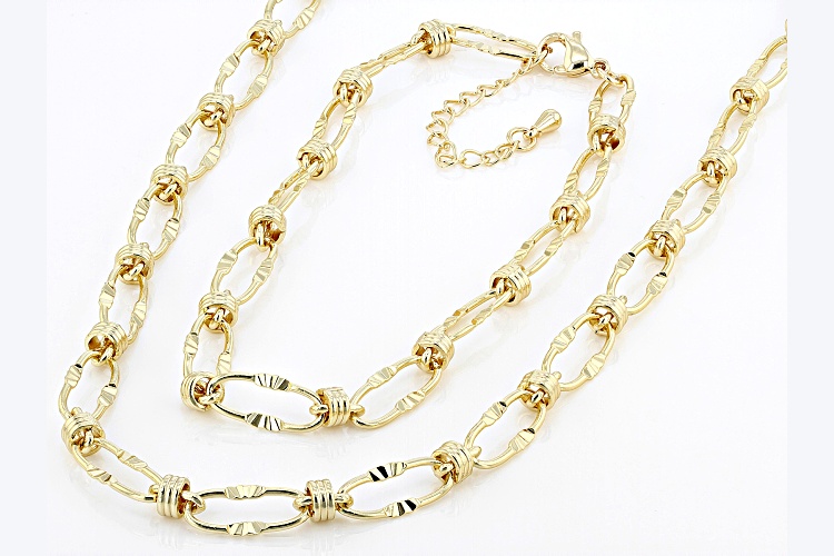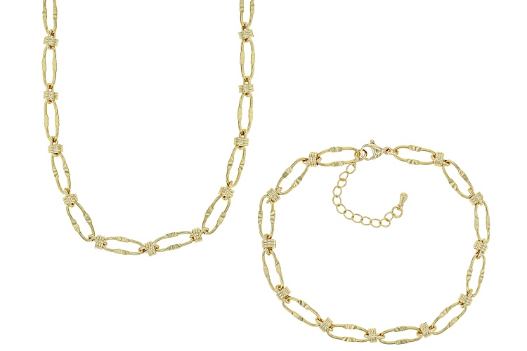 Off Park® Collection Gold Tone Necklace and Bracelet Set. Necklace measures approximately 16.00"L x 0.25"W. Bracelet measures approximately 8.50"L x 0.24"W. Both have lobster claw clasps with 2" extenders.