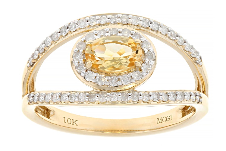 0.45ct Oval Imperial Topaz With 0.28ctw White Diamond 10k Yellow Gold Ring - Size 10