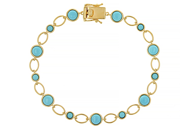 3mm, 5mm Sleeping Beauty Turquoise 18k Yellow Gold Over Sterling Silver Bracelet - Size 8