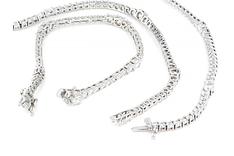 • Bella Luce® 48.88ctw Diamond Simulant Rhodium Over Brass Necklace, Bracelet, and Earring Set of 5
