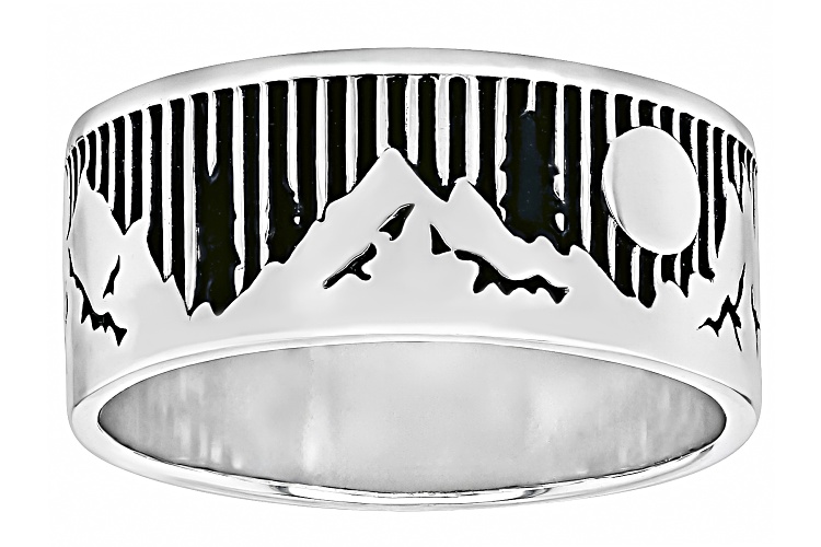 • Southwest Style by JTV™ Oxidized Sterling Silver Nature Landscape Band Ring - Size 9