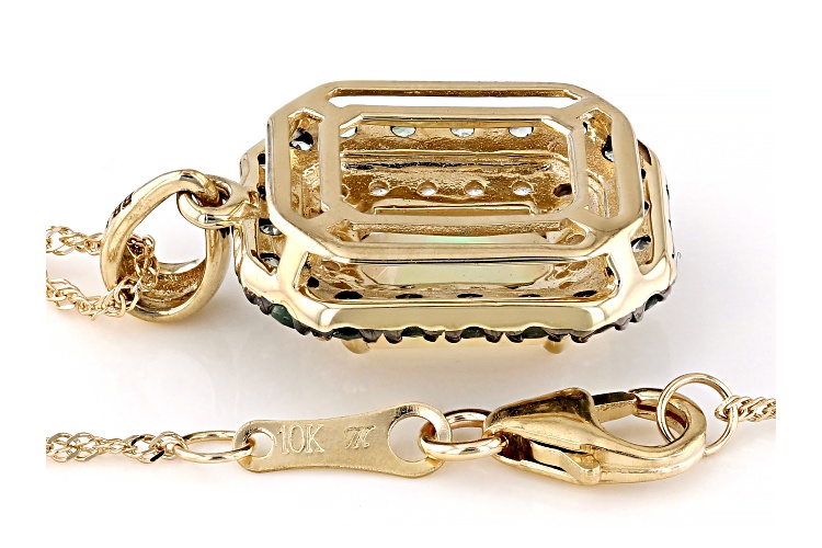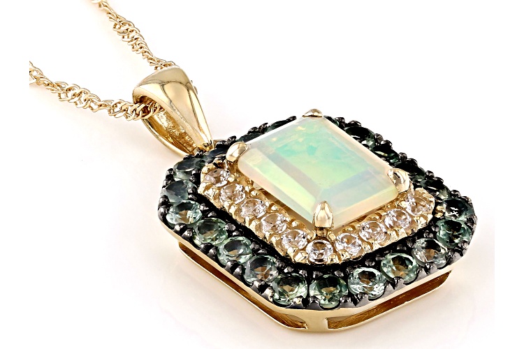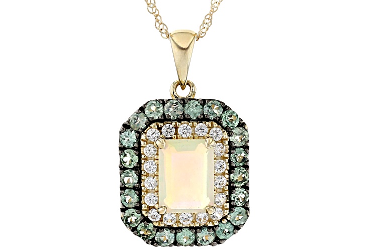 Alexandrite with Opal and White Zircon 10K Yellow Gold Pendant with Chain 1.77Ctw