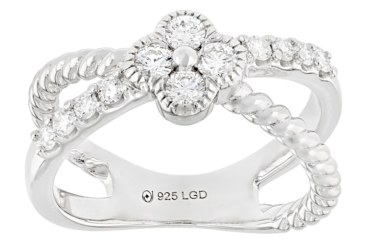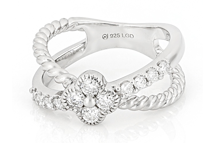 Prazana® Lab-Grown Diamonds 0.50ctw round white lab-grown diamond, rhodium over sterling silver crossover ring. Measures approximately 5/16"W. G-H color, VS clarity minimum.