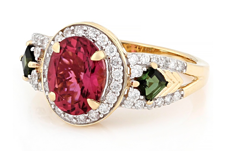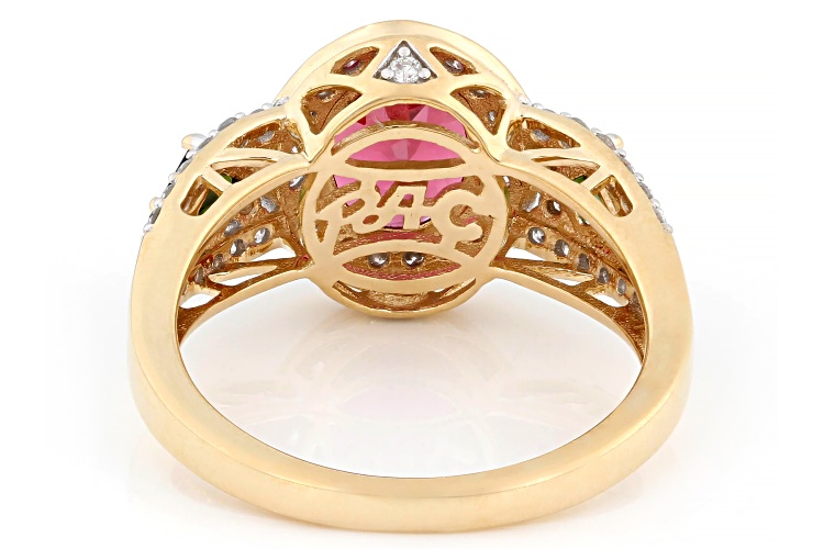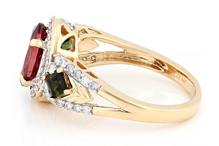 Park Avenue Collection® Pink And Green Tourmaline With White Diamond 14k Yellow Gold Ring 2.34ctw - Size 6