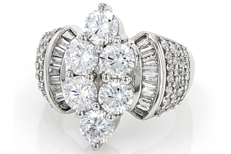 • Bella Luce® 6.00ctw White Diamond Simulant Rhodium Over Sterling Silver Ring(3.63ctw DEW) - Size 6