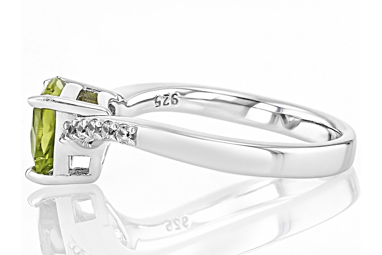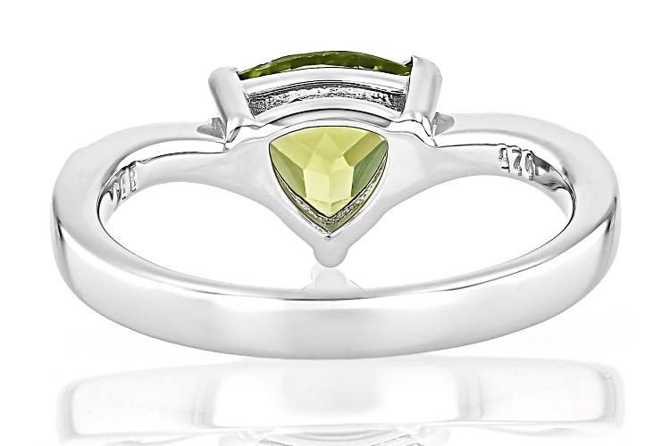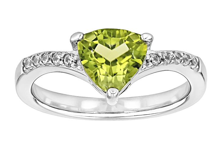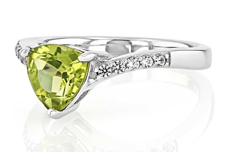• 1.60ct Trillion Manchurian Peridot™ With 0.17ctw White Zircon Rhodium Over Sterling Silver Ring - Size 10